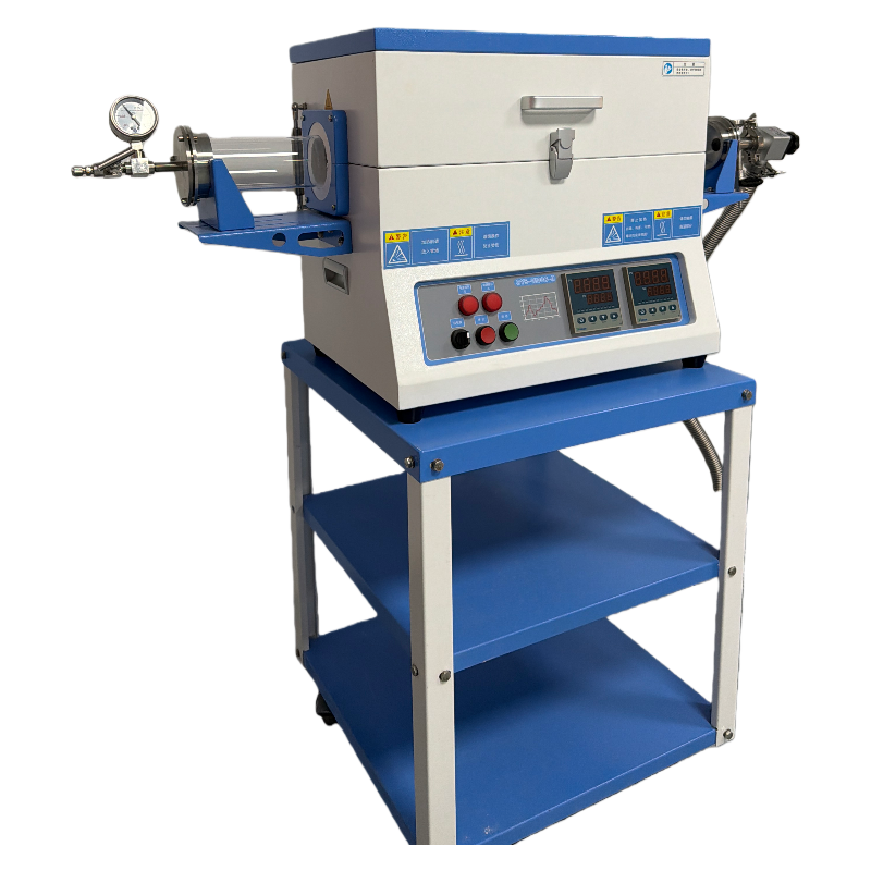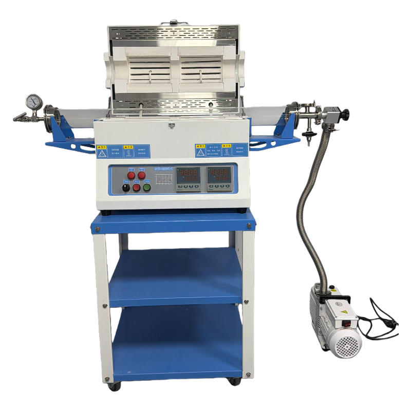 ?爐體結構:配有一對不銹鋼密封法蘭,采用硅膠密封圈密封;石英管口徑可選:φ25;φ50 ;φ60;φ80; φ100,石英管的設備設有法蘭支架;真空度:10-2torr(采用機械泵)安裝有一機械壓力表,測量范圍為-0.1~0.15MP 。