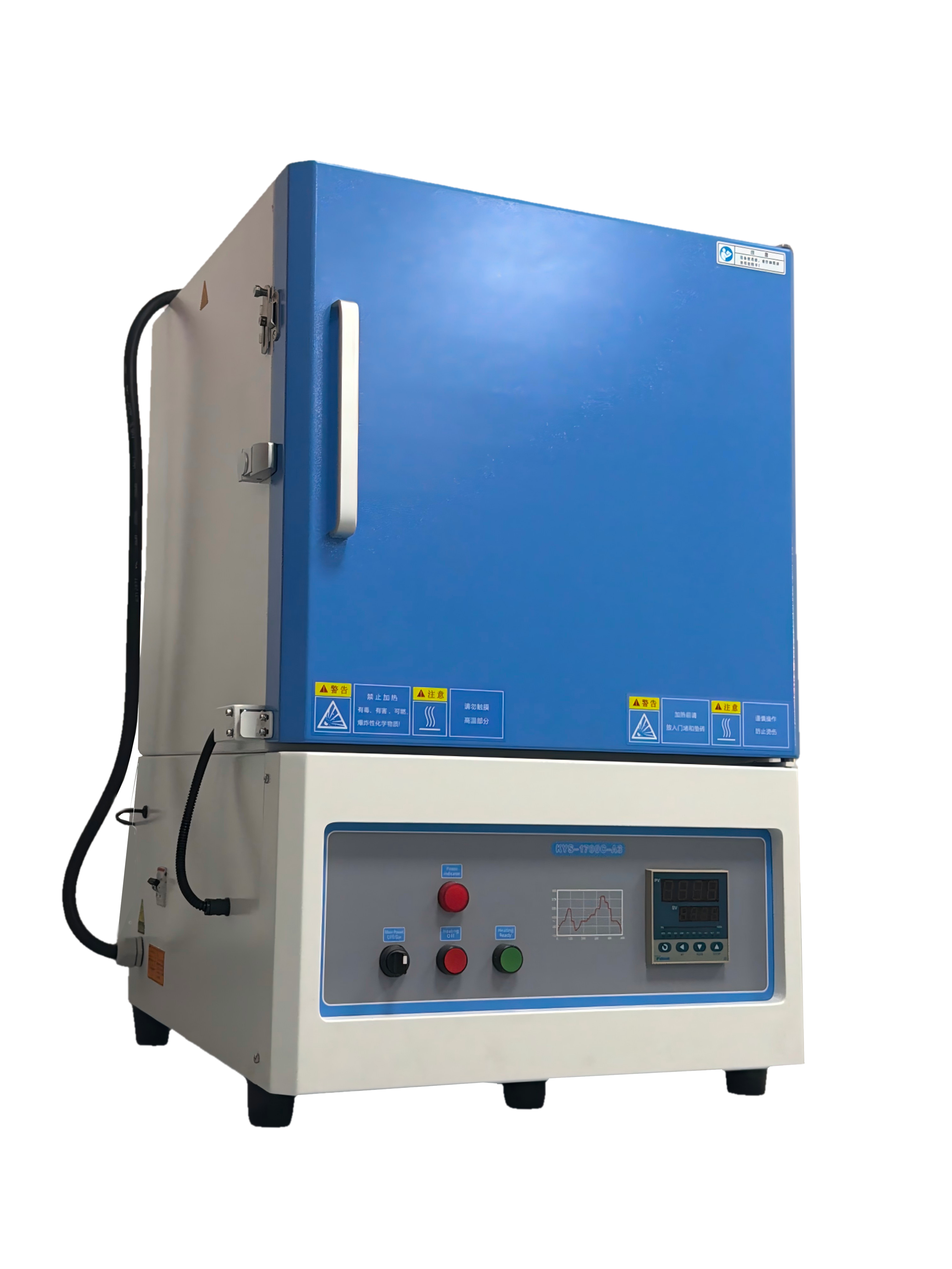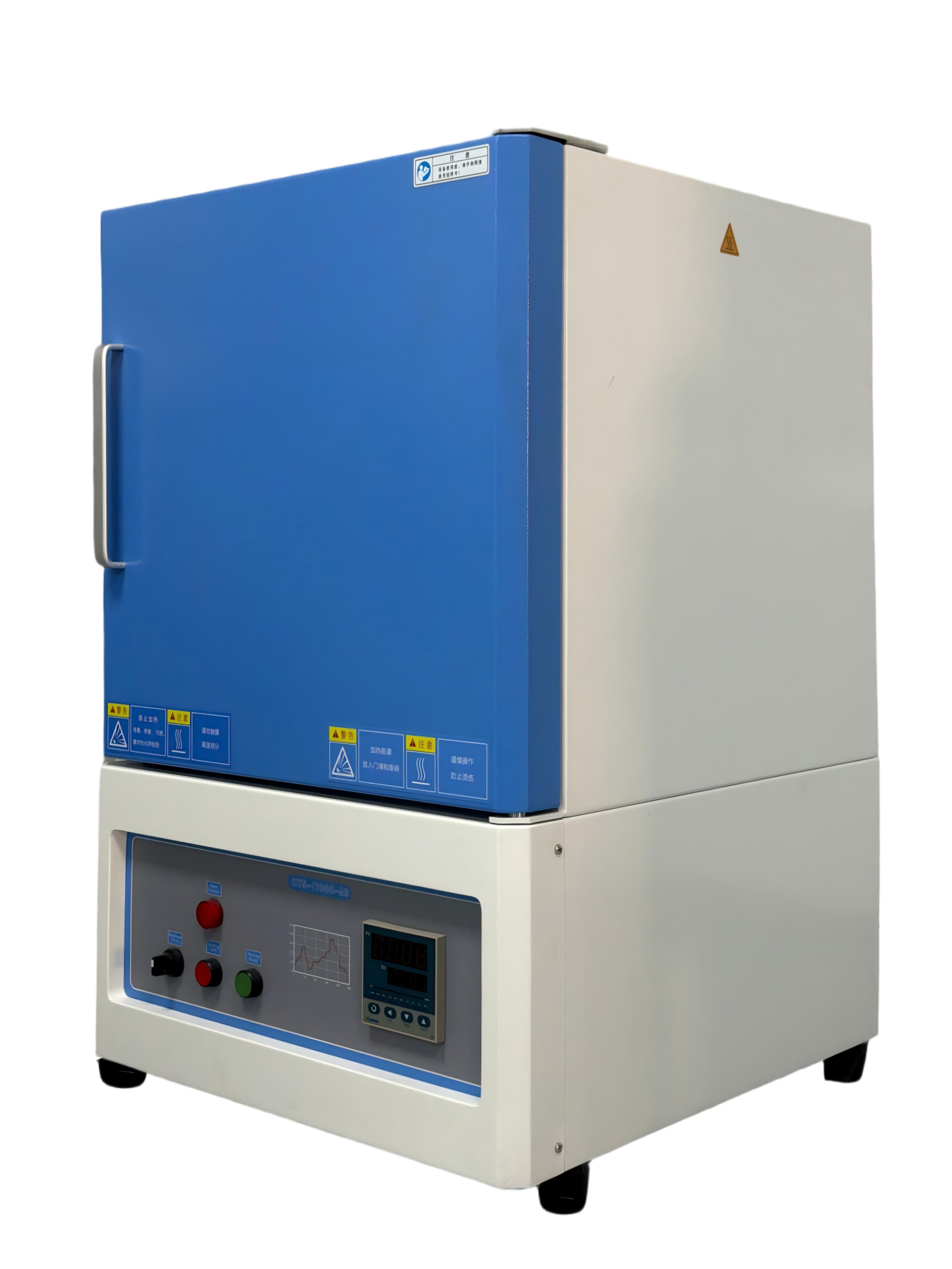 ?爐體結構:采用雙層殼體結構,并帶有風冷系統;爐膛采用高純氧化鋁纖維材料,最大程度的減少能量損失;內爐膛表面涂有美國進口的高溫氧化鋁涂層,可以提高反射率及設備的加熱效率,同時也可以延長儀器的使用壽命,帶有過熱和斷偶保護;爐膛內兩面加熱,加熱速率快,溫場均勻;爐門配有安全限位開關,并且爐門上安裝有一個保護門閂,防止意外開啟及爆炸。